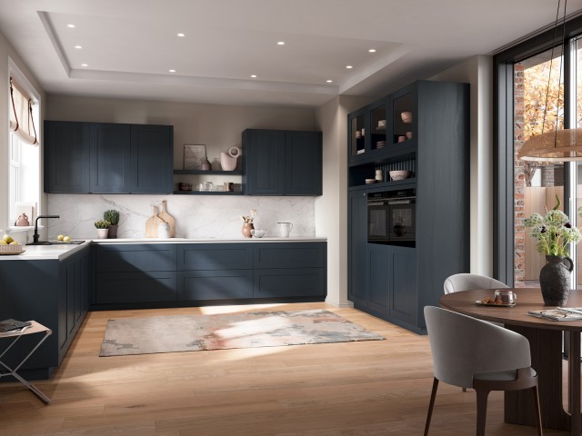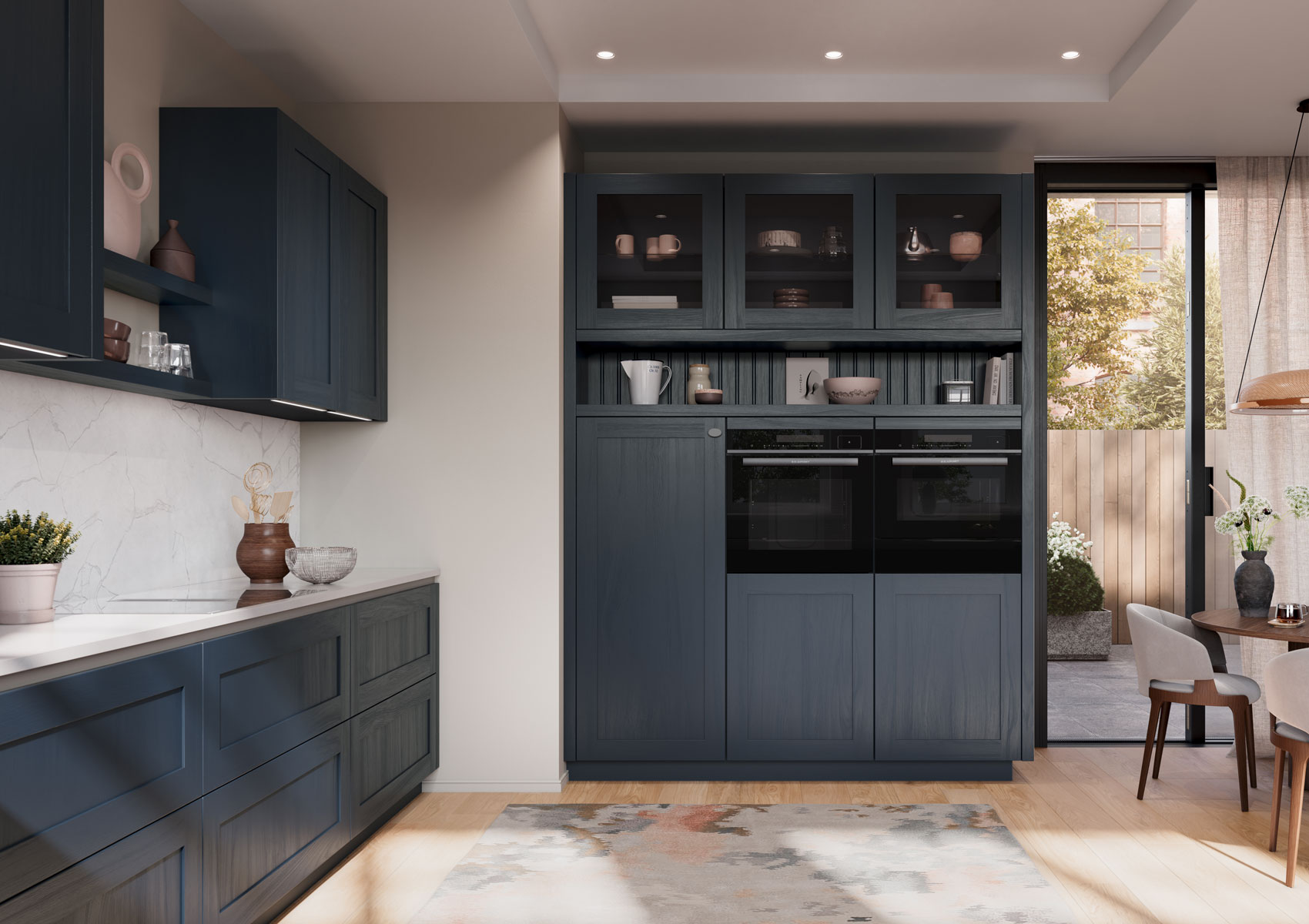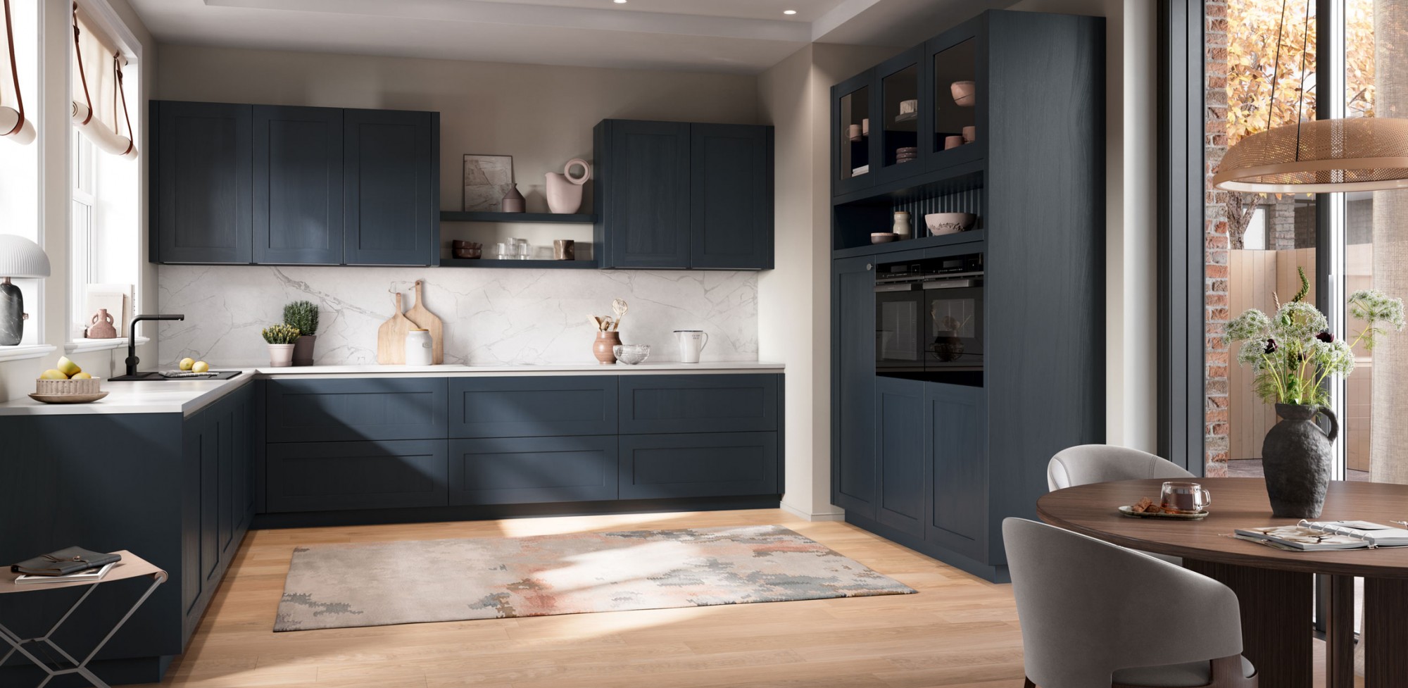 Современная немецкая кухня HAMPTON-GL в оттенке Samtblau — стиль и функциональность для ценителей дизайна