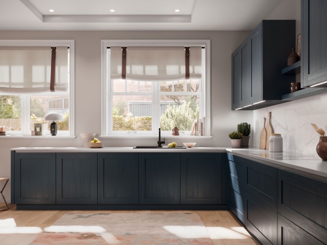 Большие окна заливают рабочую зону мягким дневным светом, подчеркивая мраморный узор керамической поверхности Calacatta. Ее матовая, толщиной 2,5 см, поверхность отлично сочетает эстетичность и практичность — устойчива к царапинам, высокой температуре и лёгкой очистке. В сочетании с темной фасадной рамкой Samtblau она создает контраст и подчеркивает стиль современного немецкого дизайна кухни. Эта рабочая зона вдохновит вас каждый день и обеспечит долговечность без компромиссов по внешнему виду.