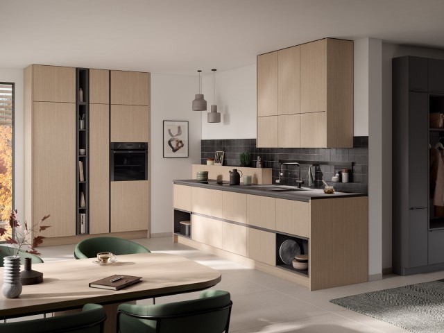 В этой линейке concept130 основной акцент сделан на природных оттенках. Кухня в таких цветах делает интерьер теплым и спокойным, словно вас окружают природа и безопасность. Контрастные оттенки придают ей дополнительную глубину, а открытые полки помогают красиво разместить кухонные принадлежности и посуду, добавляя комнате индивидуальности и уюта.