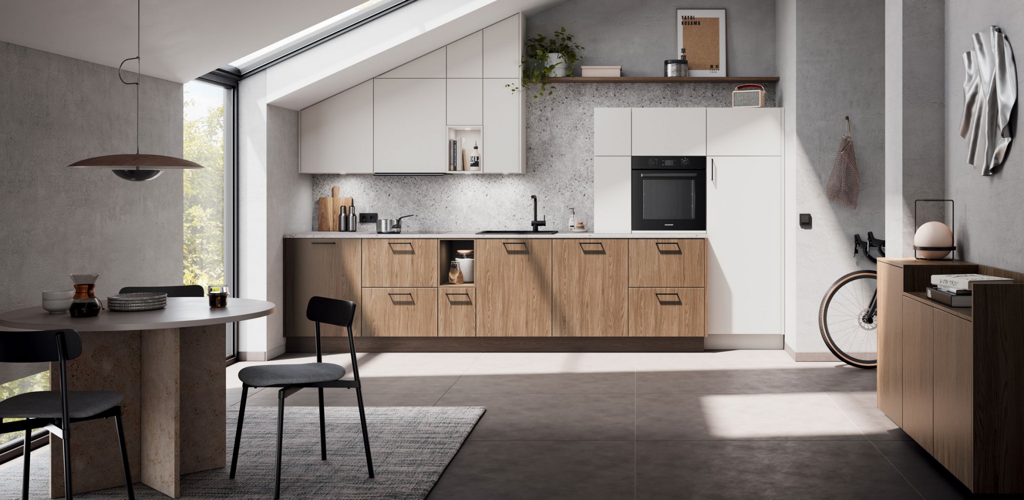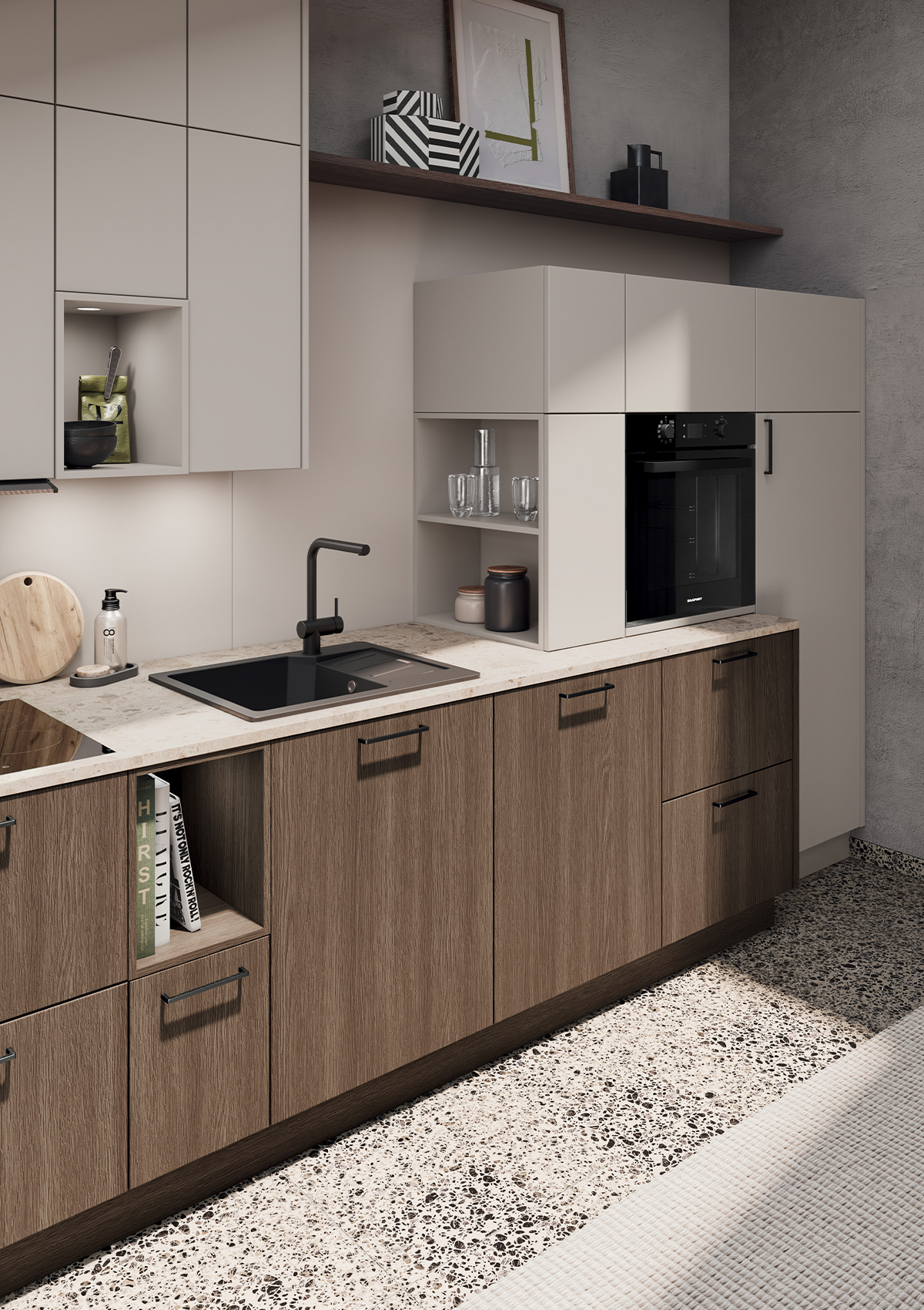 Наши кухни отличаются чёткой линейной композицией и современным стилем. Сочетание натуральных древесных оттенков, современных каменных цветов и элегантных чёрных акцентов создаёт уютную и стильную атмосферу. Как кухни немецкого производства с экологическим подходом, мы уделяем особое внимание бережному производству и надёжным материалам. Так вы получаете долговечное качество, которое прослужит вам многие годы.
